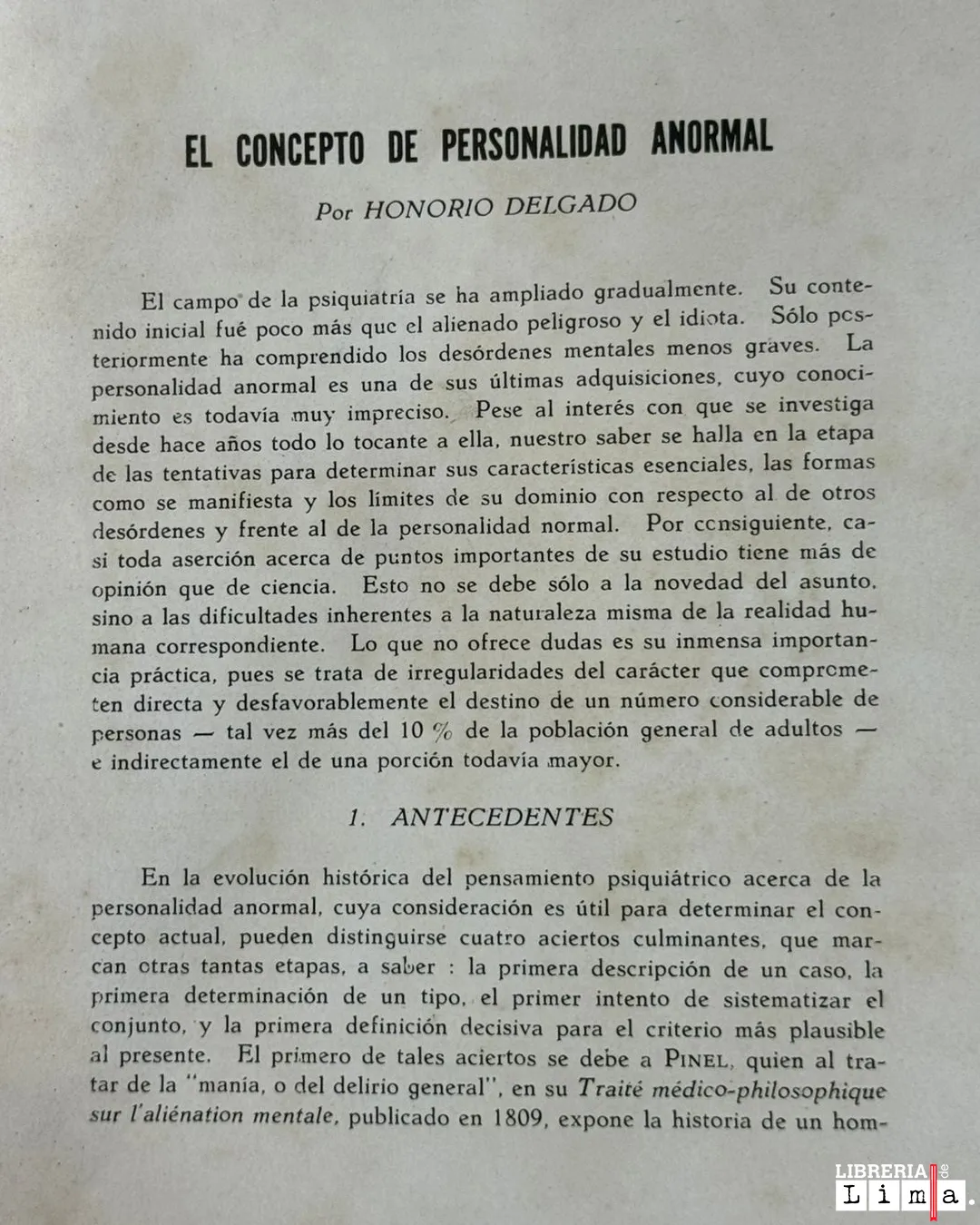 “EL CONCEPTO DE PERSONALIDAD ANORMAL” de Honorio Delgado ofrece una aproximación rigurosa y profundamente humana a los rasgos que distinguen ciertas formas de personalidad desde una perspectiva clínica y psicológica. Con la precisión que caracteriza al autor, la obra examina los límites entre lo normal y lo anómalo, articulando observación, reflexión y criterio científico en un discurso de gran seriedad intelectual. Su valor reside en la manera en que aborda un tema complejo con claridad expositiva, lo que la convierte en una lectura fundamental para médicos, psicólogos, estudiantes e investigadores.