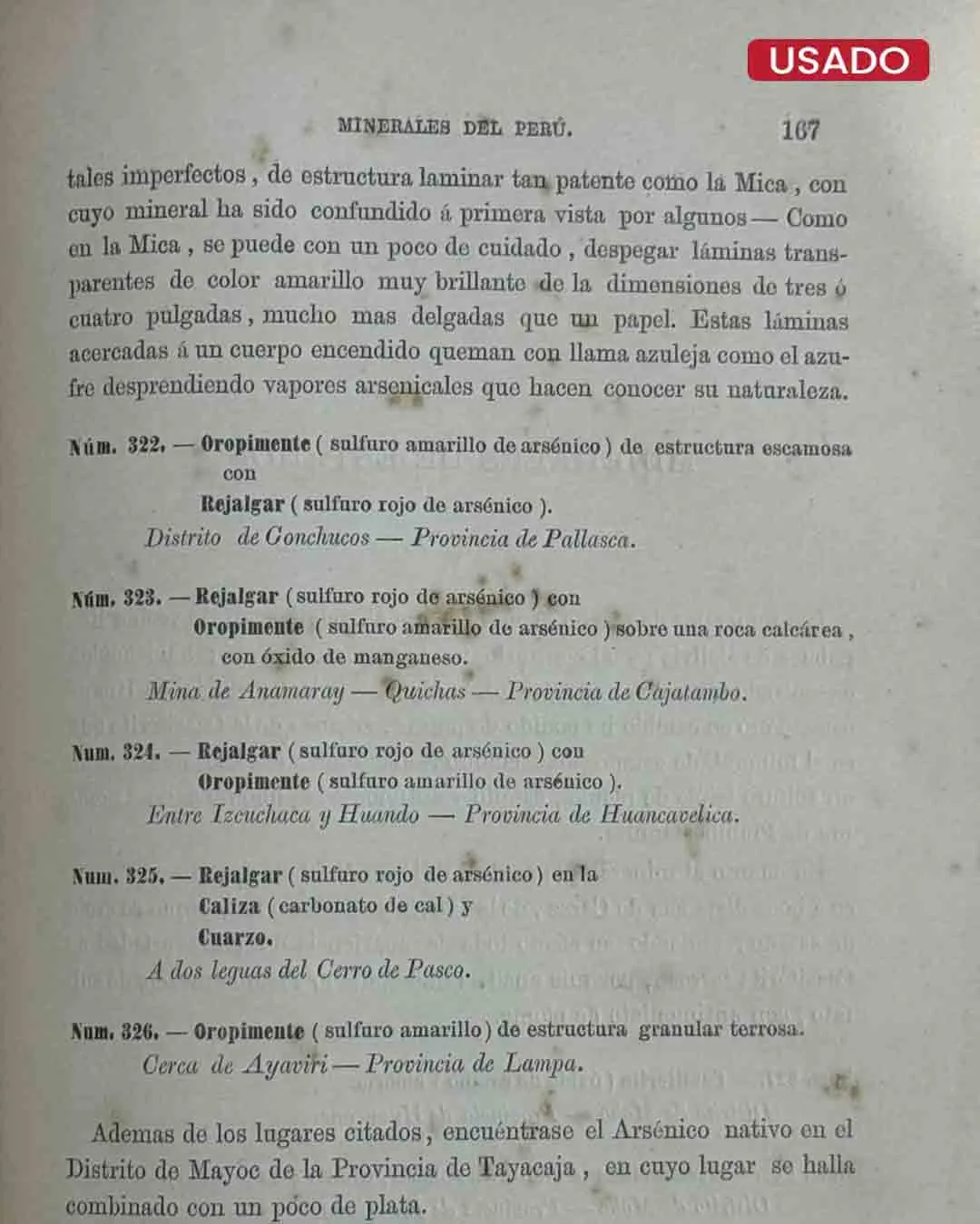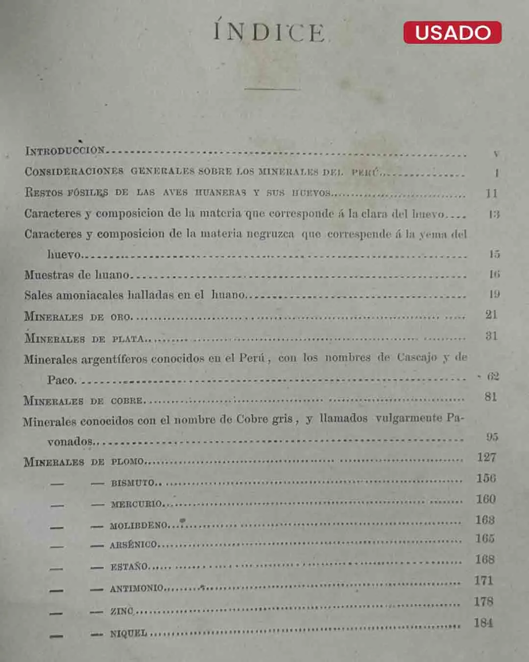 MINERALES DEL PERÚ Ó CATÁLOGO RAZONADO. DE UNA COLECCIÓN QUE REPRESENTA LOS PRINCIPALES TIPOS MINERALES DE LA REPÚBLICA, CON MUESTRAS DE HUANO Y RESTOS DE AVES QUE LO HAN PRODUCIDO