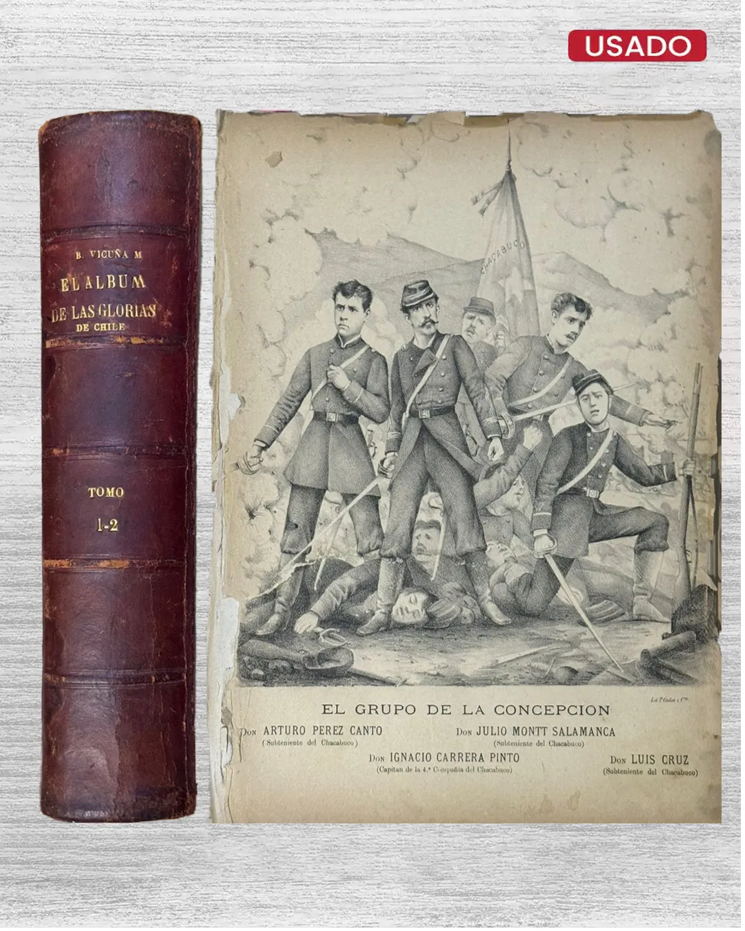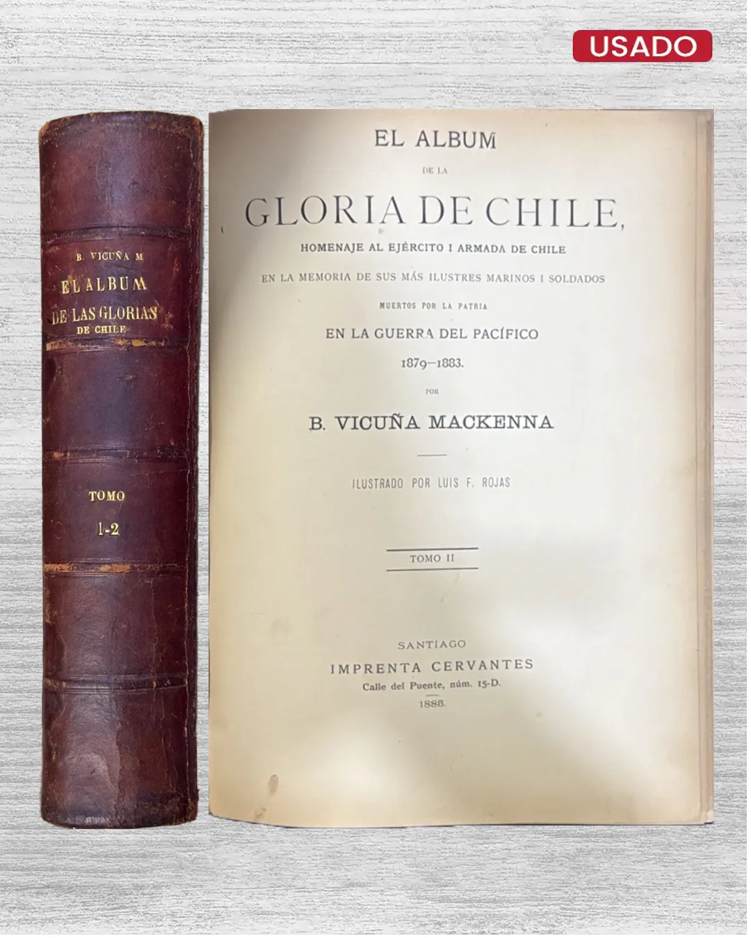 Desde las arenas de Tarapacá hasta el Morro de Arica, resuenan nombres inmortales del Ejército y Armada chilenos: "EL ÁLBUM DE LAS GLORIAS DE CHILE (TOMO 1-2)" de Benjamín Vicuña Mackenna erige monumento literario a los caídos en la Guerra del Pacífico (1879-1883). Publicado entre 1883-1885 por Imprenta Cervantes (622 páginas ilustradas por Luis F. Rojas), este díptico biográfico exalta tenientes, sargentos y marinos que sacrificaron vidas en Pisagua, Iquique y Chorrillos.