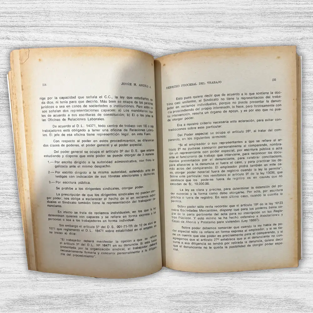 EL DERECHO PROCESAL DEL TRABAJO EN EL PERÚ de Jorge M. Angulo es una obra clave para todo profesional del derecho laboral que desee comprender a fondo el sistema procesal laboral peruano. A lo largo de sus páginas, Angulo ofrece un análisis exhaustivo del marco jurídico que regula las relaciones laborales en el país, destacando el fuero laboral y las etapas del proceso laboral. Este libro es una referencia esencial para quienes buscan conocer los principios del derecho procesal laboral, como la celeridad, la oralidad y la protección efectiva de los derechos de los trabajadores.