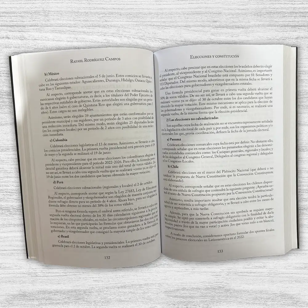 ELECCIONES Y CONSTITUCIÓN de Rafael Rodríguez Campos es una obra que analiza críticamente la evolución de los sistemas electorales y constitucionales en la región. El autor examina cómo eventos recientes, como la pandemia de COVID-19 y las crisis políticas, han impactado en la democracia y la gobernabilidad, utilizando ejemplos del Perú y otros países latinoamericanos. El libro ofrece una perspectiva comparativa y multidisciplinaria, abordando temas como la participación ciudadana, la representación política y las reformas institucionales.