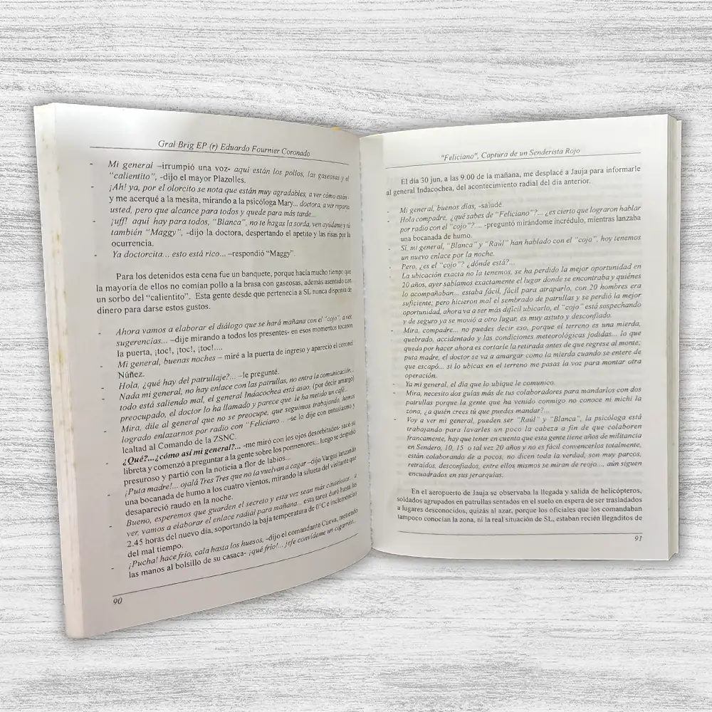 FELICIANO. CAPTURA DE UN SENDERISTA ROJO de Eduardo Fournier Coronado relata la operación que culminó con la captura de Óscar Ramírez Durand, conocido como “Feliciano”, uno de los líderes de la facción más radical de Sendero Luminoso, conocida como “Sendero Rojo”. Después de la captura de Abimael Guzmán en 1992, Feliciano continuó la lucha armada, rechazando la rendición y liderando una fracción violenta del grupo. El libro detalla las estrategias de inteligencia y las operaciones militares que llevaron a su captura en 1999, tras años de búsqueda.