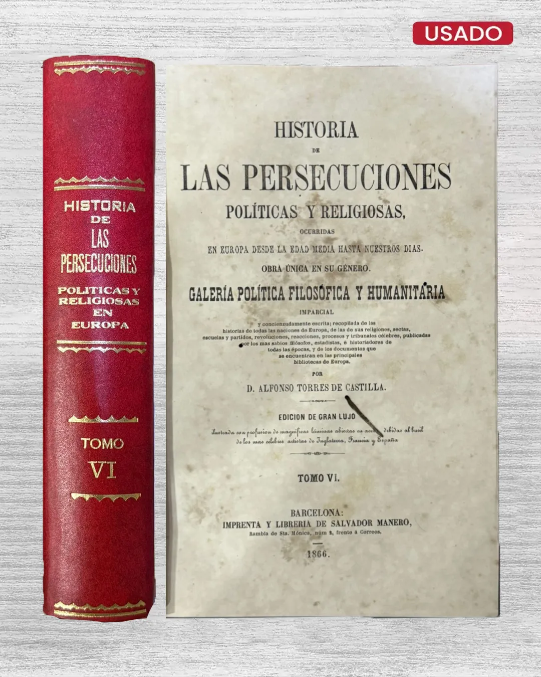 En “HISTORIA DE LAS PERSECUCIONES POLÍTICAS Y RELIGIOSAS. OCURRIDAS EN EUROPA DESDE LA EDAD MEDIA HASTA NUESTROS DÍAS. OBRA ÚNICA EN SU GÉNERO. GALERÍA POLÍTICA FILOSÓFICA Y HUMANITARIA (6 TOMOS)” de D. Alfonso Torres de Castilla, se despliega un monumental fresco histórico que documenta la sinrazón humana a través de los siglos. Esta obra singular recorre desde las hogueras inquisitoriales medievales hasta las guerras civiles modernas, catalogando cruzadas, pogromos judíos, guerras de religión hugonotes y revoluciones ateas.