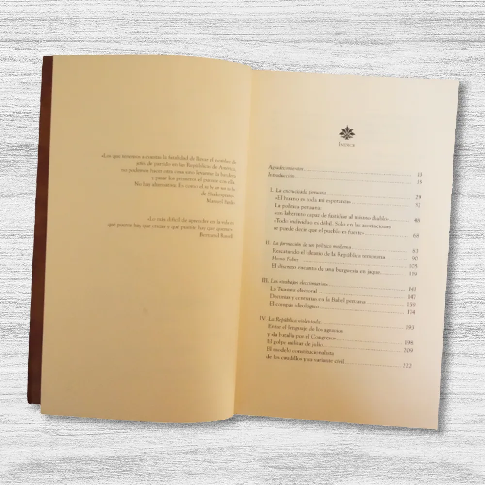 HOMO POLITICUS. MANUEL PARDO, LA POLÍTICA PERUANA Y SUS DILEMAS (1871-1878) de Carmen Mc Evoy es un estudio esencial que analiza el ascenso y gobierno de Manuel Pardo, primer presidente civil del Perú, en un contexto de crisis fiscal y fragmentación política. La historiadora peruana reconstruye la campaña electoral de 1871-1872, marcada por intrigas y tensiones, donde Pardo y la Sociedad Independencia Electoral desafiaron al caudillismo militar y al "leviatán guanero", un Estado colapsado por la corrupción y el autoritarismo. Mc Evoy examina cómo este proyecto civilista buscó institucionalizar la política, promover el orden fiscal y enfrentar el abismo social, mientras delineaba las bases de un Perú moderno. Con rigor documental, el libro explora las contradicciones de una época en que el país osciló entre la riqueza guanera y el endeudamiento crónico.