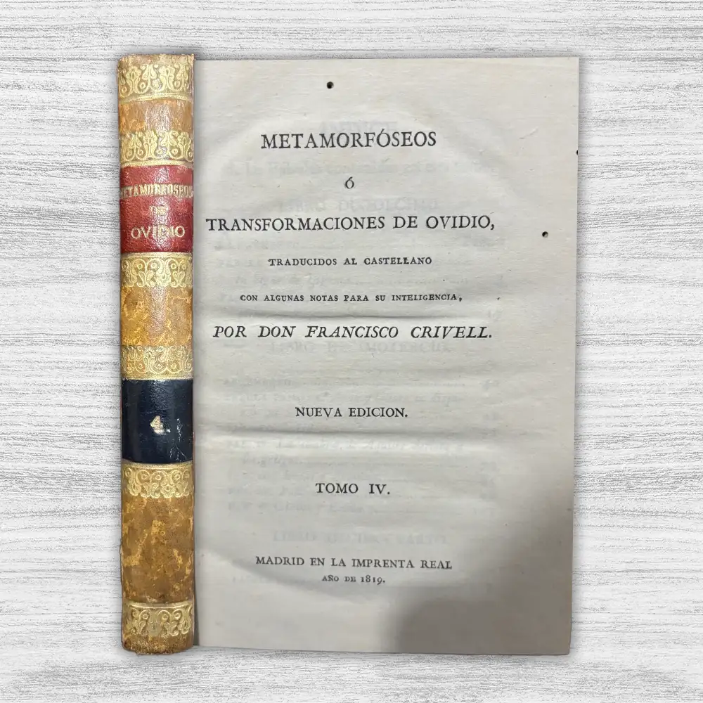 METAMORFÓSEOS Ó TRANSFORMACIONES DE OVIDIO de Don Francisco Crivell es una joya literaria que reúne las célebres fábulas mitológicas de Ovidio, traducidas con maestría al castellano por Crivell a inicios del siglo XIX. Esta edición, cuidadosamente elaborada, permite al lector sumergirse en un universo donde los dioses y los mortales conviven entre pasiones, castigos y prodigiosas metamorfosis. Cada historia expone con elegancia la riqueza de la mitología grecorromana y la profundidad simbólica del cambio como fuerza universal.