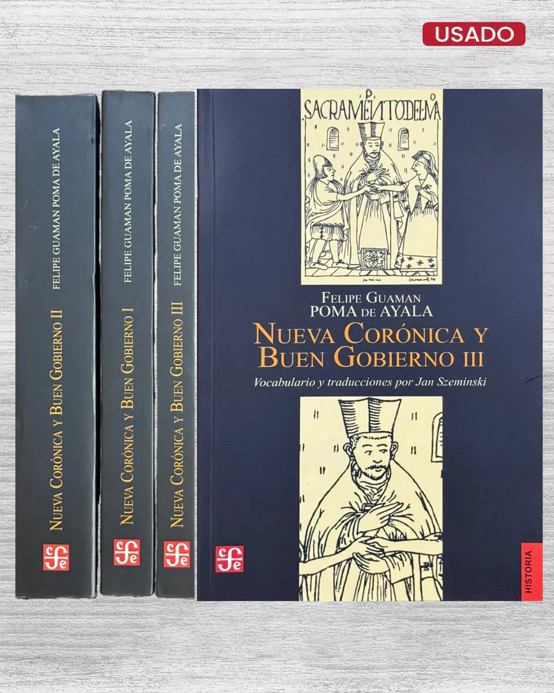 “NUEVA CORÓNICA Y BUEN GOBIERNO (I – II – III)” de Felipe Guaman Poma de Ayala, en la edición del Fondo de Cultura Económica, constituye una de las obras más poderosas y singulares de la tradición histórica andina. En sus páginas, el autor reconstruye con mirada crítica la historia del mundo inca, describe la organización social y expone con firmeza las injusticias del orden colonial.