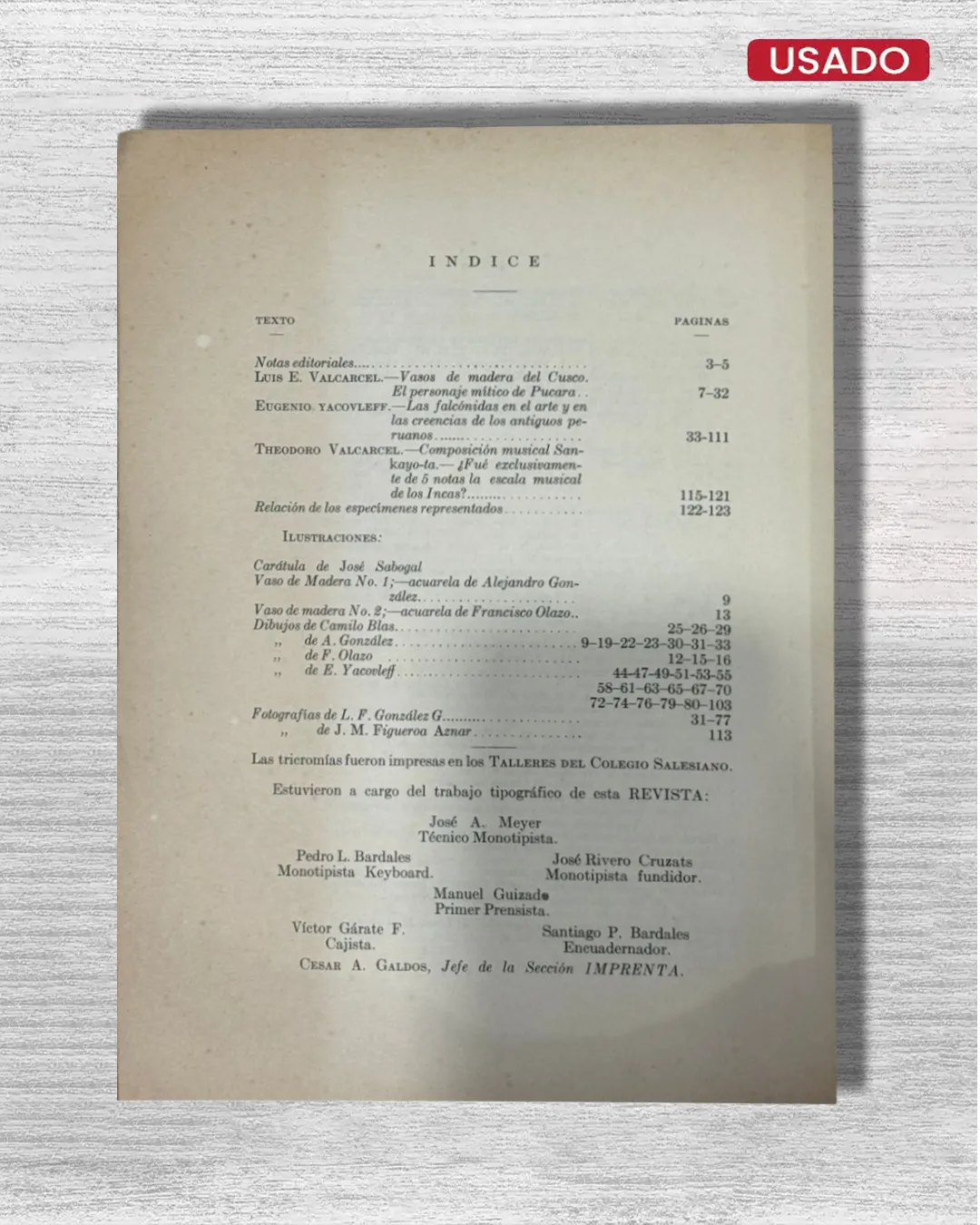 ¿Cuáles fueron los primeros hallazgos que definieron la arqueología peruana moderna? "REVISTA DEL MUSEO NACIONAL (1932) N°1" de Luis E. Valcárcel, eminente antropólogo e indigenista, inaugura la publicación científica del Museo Nacional de Lima con estudios pioneros sobre arte precolombino. Bajo su dirección, este número inaugural reúne investigaciones sobre vasijas de madera cusqueñas, el personaje mítico de Pucará y aves rapaces en el simbolismo andino, firmadas por Valcárcel, Eugenio Yacovleff y Theodoro Valcárcel.